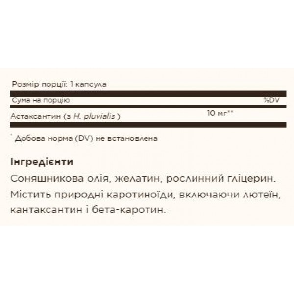 - Містить 10 мг астаксантину в одній капсулі