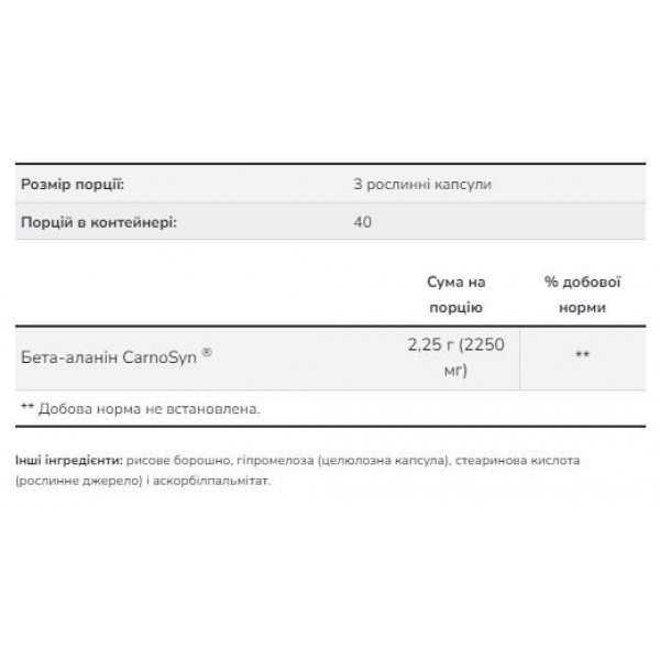 - Містить 750 мг бета-аланіну в кожній капсулі.