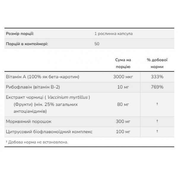 Зверніть увагу, що Чорничний комплекс, Bilberry Complex 80mg - 100 vcaps не є лікарським засобом. Не замінює повноцінного харчування. Не перевищуйте рекомендовану добову дозу. Використовуйте згідно з інструкцією виробника, яка є на упаковці або всередині неї.