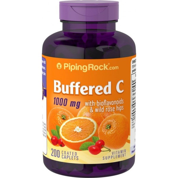 Buffered C 1000 mg with Bioflavonoids & Rose Hips 200 Coated Caplets Piping Rock