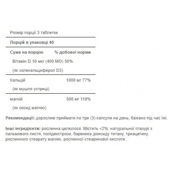 - Комбінація кальцію, магнію і вітаміну D3 для зміцнення кісток і підтримки м'язів.