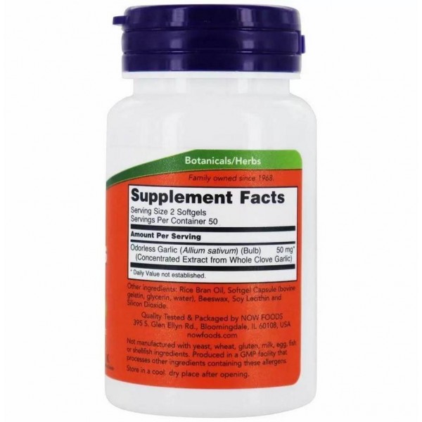 Часник без запаху екстракт Now Foods (Odorless Garlic) 100 капсул