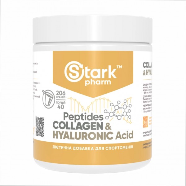 ????Зберігайте молодість та здоров'я шкіри, суглобів і кісток з "Collagen Peptides & Hyaluronic Acid - 206 г" від Stark Pharm.