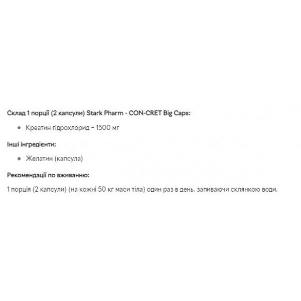 ????Con-Cret 750mg від Stark Pharm - ваш ключ до максимальної продуктивності та відмінного самопочуття! ????