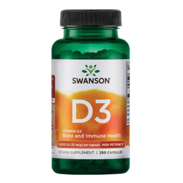 Swanson D-3 High Potency Vitamin - це високоякісна харчова добавка, що містить 1000 IU (25 мкг) вітаміну D3 в кожній капсулі. Вітамін D3 важливий для підтримки здоров'я кісток та імунної системи, сприяючи кращому засвоєнню кальцію та підтримуючи загальний добробут. Цей продукт виготовлений з високоякісних інгредієнтів, що забезпечують природну підтримку вашого організму. Зручний формат капсул робить їх легкими для щоденного використання.
