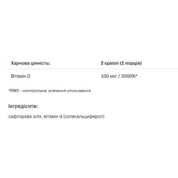 Зверніть увагу, що D3 4000drops - 30ml не є лікарським засобом. Не замінює повноцінного харчування. Не перевищуйте рекомендовану добову дозу. Використовуйте згідно з інструкцією виробника, яка є на упаковці або всередині неї.