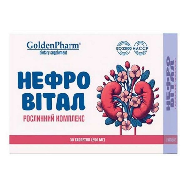 Голден-Фарм Нефровітал - дієтична добавка на рослинній основі, що підтримує роботу нирок і сечовидільної системи. Рослинні компоненти у складі комплексу мають антибактеріальну дію, знижують ризик інфікування, підтримують функціонування сечовивідної системи та зміцнюють загальний імунітет.