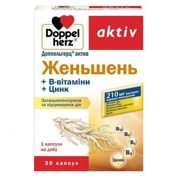 Доппельгерц актив, женьшень + В-вітаміни, Doppel Herz, 30 капсул