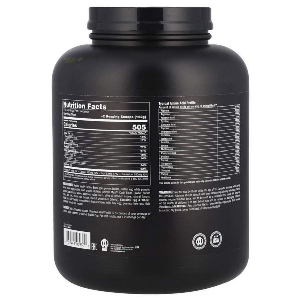 Animal Meal™ використовує ефективність корисних цільнохарчових інгредієнтів, щоб забезпечити спортсменів комплексним, стійким і повноцінним поживним рішенням. Завдяки ретельному балансу білків і вуглеводів цей продукт розроблений для підтримки максимальної продуктивності. Збалансована їжа Animal Meal™ — це надійне джерело поживних речовин без використання штучних барвників, ароматизаторів, підсолоджувачів і консервантів. Кожна порція призначена для підтримки загального стану здоров’я та фізичної форми, а її формула забезпечує легке травлення та засвоєння життєво важливих поживних речовин.