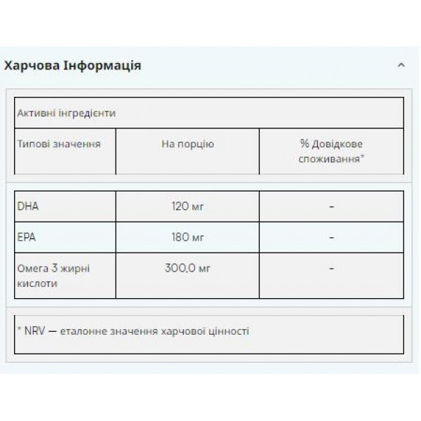 - Висока якість: виготовлено з високоякісного риб'ячого жиру, який забезпечує ефективне засвоєння.