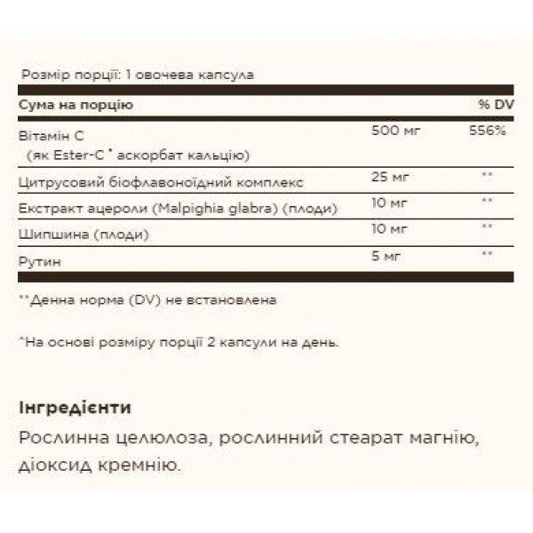 - Унікальна формула Ester-C® для тривалої дії та кращого засвоєння.