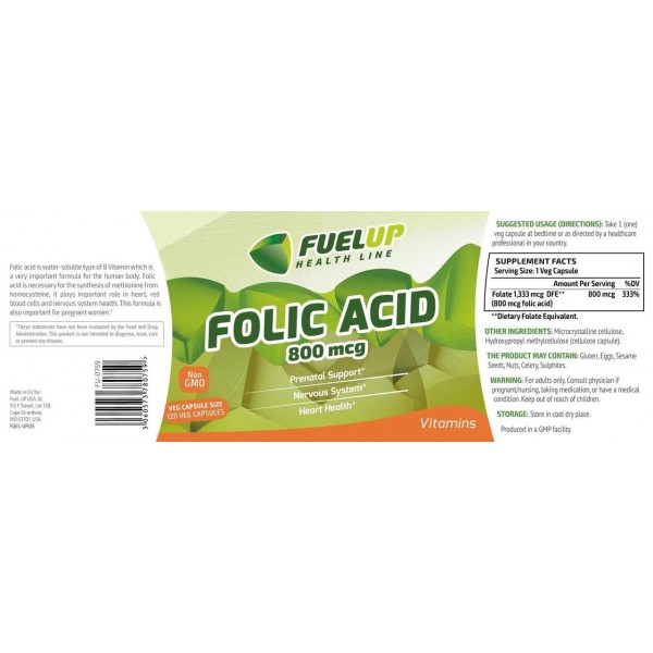 Folic Acid 800 mcg, 120 vcaps