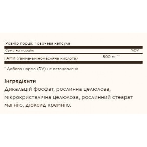 Зверніть увагу, що GABA 500mg - 100 vcaps не є лікарським засобом. Не замінює повноцінного харчування. Не перевищуйте рекомендовану добову дозу. Використовуйте згідно з інструкцією виробника, яка є на упаковці або всередині неї.