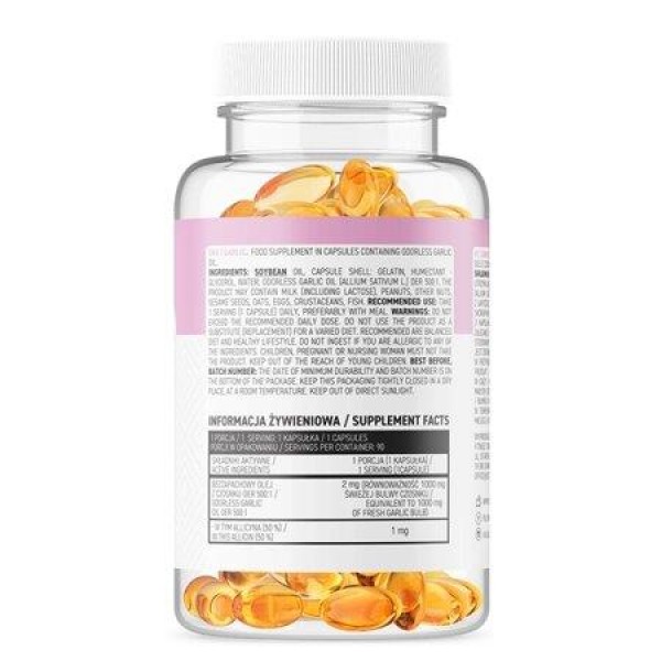 Зверніть увагу, що Часникова олія OstroVit Garlic 90 caps не є лікарським засобом. Не замінює повноцінного харчування. Не перевищуйте рекомендовану добову дозу. Використовуйте згідно з інструкцією виробника, яка є на упаковці або всередині неї.