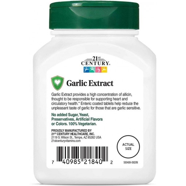 Зверніть увагу, що Garlic Extract, Standardized, 60 Enteric Coated Tablets 21st Century не є лікарським засобом. Не замінює повноцінного харчування. Не перевищуйте рекомендовану добову дозу. Використовуйте згідно з інструкцією виробника, яка є на упаковці або всередині неї.