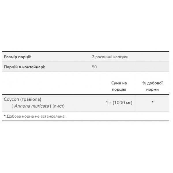 ????️ Спосіб вживання:Дорослі можуть приймати по одній капсулі Graviola 500 мг один або два рази на день разом з їжею або за рекомендацією лікаря. Дозу можна змінювати в залежності від ваших потреб, але важливо дотримуватися рекомендацій стосовно вживання.