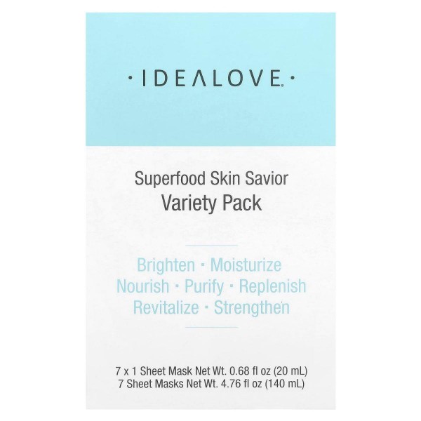 Idealove, Superfood Skin Savior, набір масок із суперфудами, 7 тканинних масок по 20 мл (0,68 рідк. унції)