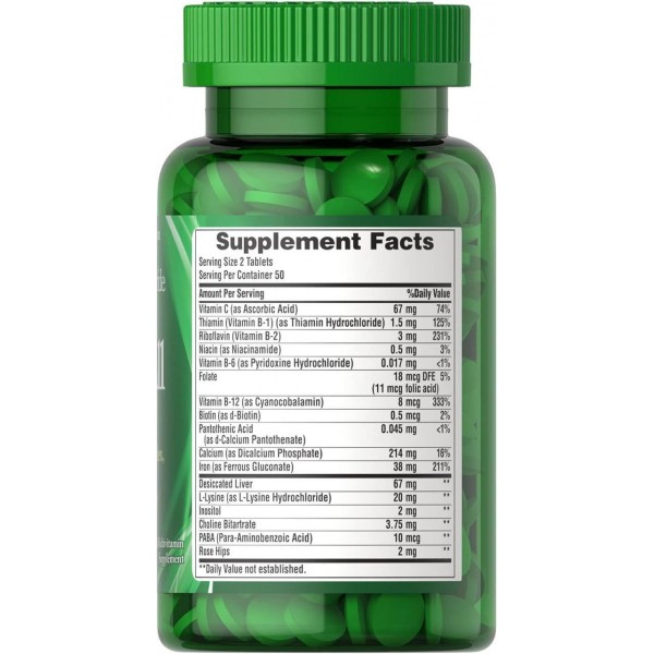 Iron All (Plus Liver, B-complex, Vitamin-C) 100tabl Puritan's Pride
