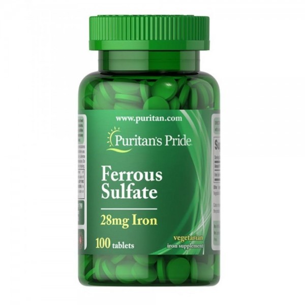 Сульфат заліза, Iron Ferrous Sulfate 28 mg - 100 Tablets Puritans Pride