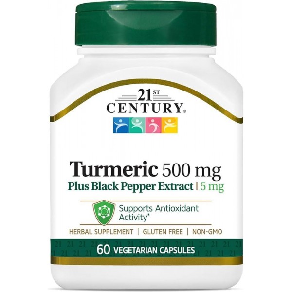 21st Century Turmeric Plus Black Pepper Extract 500 mg містить спеціальні антиоксиданти рослинного походження під назвою куркуміноїди. Вони дають змогу нейтралізувати вільні радикали в організмі людини.