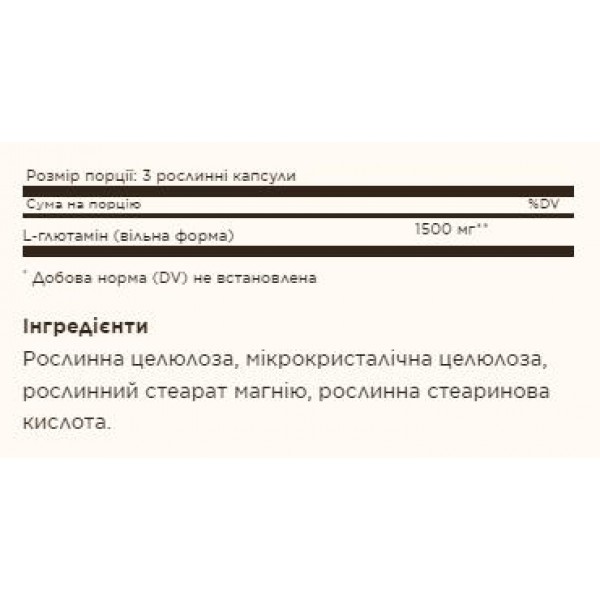 - Містить 500 мг глютаміну на капсулу.