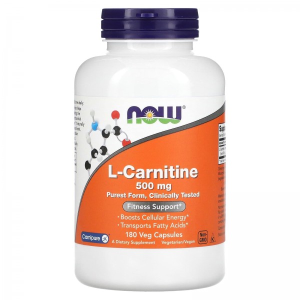 L-карнітин, L-Carnitine, Now Foods, 500 мг, 180 вегетаріанських капсул