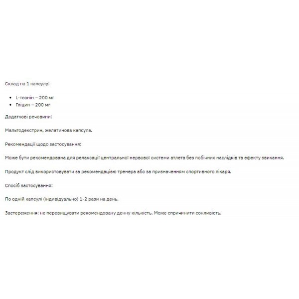 ????Рекомендований спосіб вживання: реокмендується приймати одну капсулу L-Theanine 200mg один раз на день.