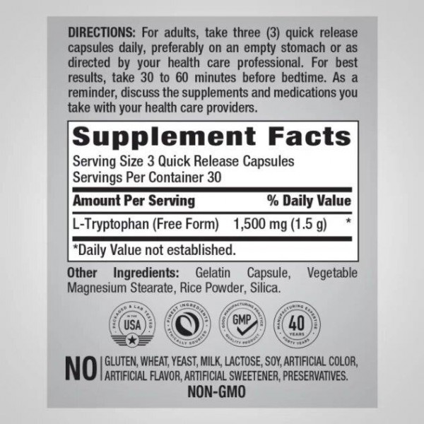 L-Tryptophan, 1500 mg, 90 Capsules Piping Rock