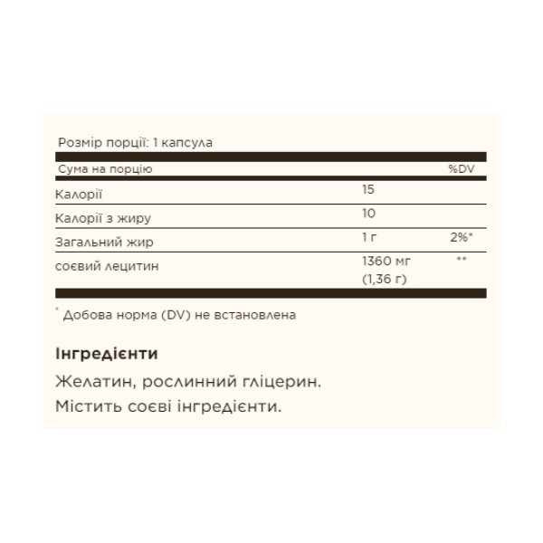 - Натуральна підтримка: Містить 1360 мг лецитину в кожній м'якій гелевій капсулі.