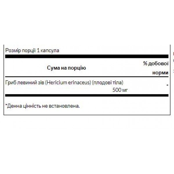 - Містить 500 мг екстракту гриба Lion's Mane в кожній капсулі.