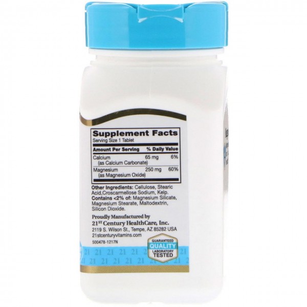 Зверніть увагу, що Магній 21st Century Magnesium, 250 mg, 110 Tablets не є лікарським засобом. Не замінює повноцінне харчування. Не перевищуйте добову дозу, що рекомендується. Використовуйте згідно з інструкцією виробника, яка знаходиться на упаковці або всередині неї.