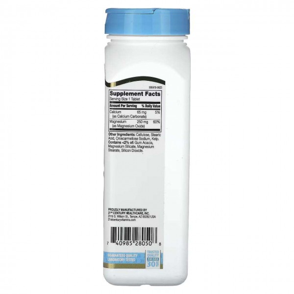 Зверніть увагу, що Магній 21st Century Magnesium 250 mg 250 Tablets не є лікарським засобом. Не замінює повноцінного харчування. Не перевищуйте рекомендовану добову дозу. Використовуйте згідно з інструкцією виробника, яка є на упаковці або всередині неї.