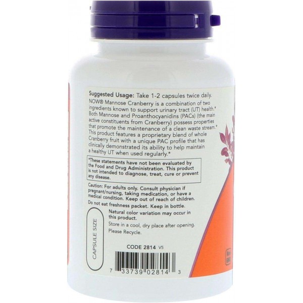 NOW Mannose Cranberry – це поєднання двох інгредієнтів, які, як відомо, підтримують здоров'я сечовивідних шляхів.