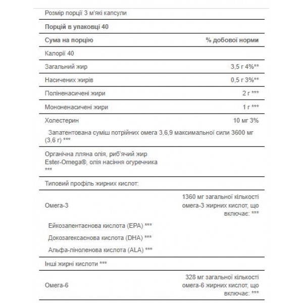 - Три види омега-жирних кислот: Омега-3, омега-6 та омега-9 підтримують нормальне функціонування організму.