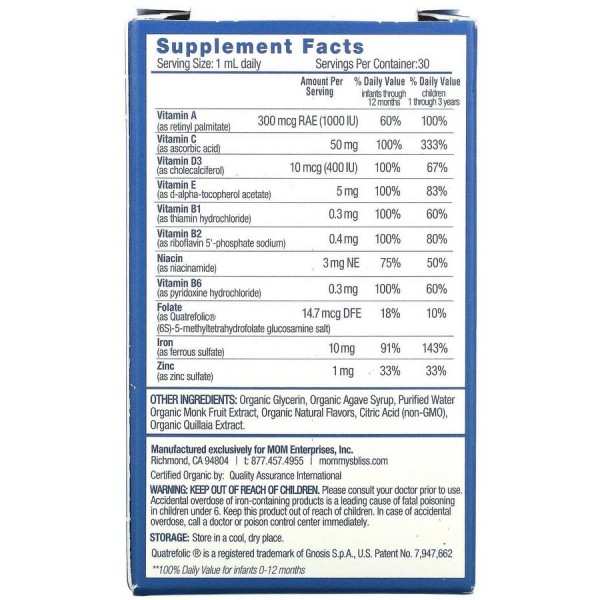 Mommy's Bliss, дитячі полівітаміни + залізо, від 2 місяців, виноград, 30 мл (1 рідк. унція)