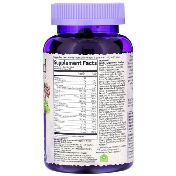 Сертифікована органічні фрукти жувати базову суміш: органічне яблуко (фрукти, пюре концентрату і концентрат соку), органічний персик (фруктове пюре концентрат), органічні тапиоки волокно, пектин (з яблук і апельсинів), органічний журавлинний аромат, органічний фіолетовий морквяний сік концентрат (для кольоровий), органічний апельсин (шкірка), органічна рисове борошно і органічне соняшникову олію (для покриття), сертифікована органічна натуральна вітамінна суміш для харчових продуктів: [екстракт органічного еской альма-ягоди (фрукти), органічний сесбанія grandiflora (лист), органічна гуава (фрукти і листя), органічний лимон (шкірка), органічний святий базилік (лист), органічний аннато (фрукти і насіння), органічна Морінга (лист), органічна буряк (корінь), органічна брокколі (стебло і квітка), органічна морква (корінь), органічна шпинат (листя), органічний томат (фрукти), органічна полуниця (фрукти), органічна вишня (фрукти), органічна ожина (фрукти), органічний зелений болгарський перець (фрукти), органічний брю ссельскій капуста (лист), органічний імбир (корінь) органічна лохина (фрукти), органічний часник (цибулина), органічний зелений лук (цибулина), органічний ріпак (листя), органічна червона капуста (листя), органічна спаржа (квітка і стебло) , органічний селера (стебло), органічний огірок (гарбуз), органічна капуста (лист), органічна капуста).