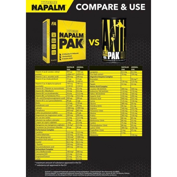 Fitness Authority Napalm Pak - це комбінація з 55 компонентів, що дозволяють підтримувати здорове та різноманітне харчування.
