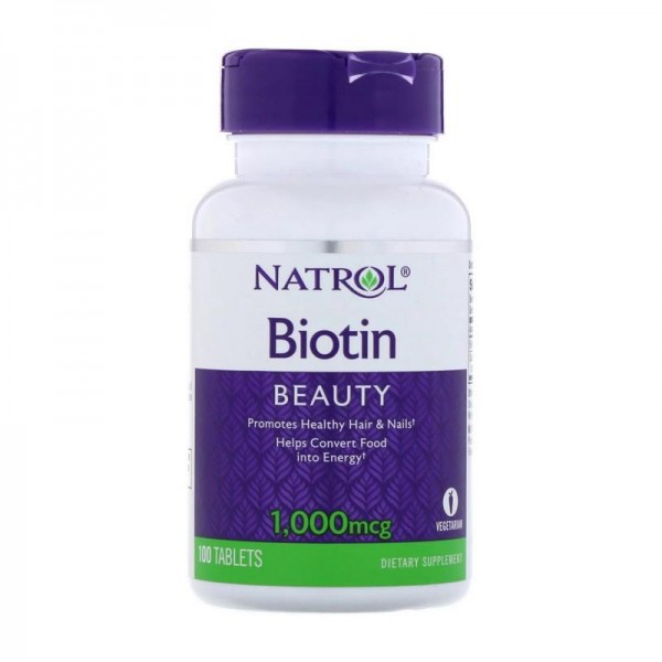 Biotin 1000 mcg від популярного американського бренду Natrol для підтримки здоров'я волосся, шкіри та міцних нігтів. До складу добавки входить біотин.