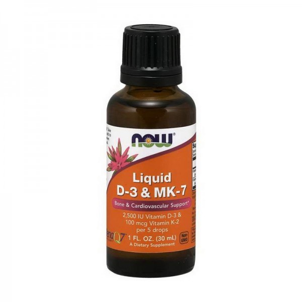 Продукт Liquid D-3 & MK-7 від NOW поєднує в собі дві поживні речовини, які були ретельно досліджені на предмет їхнього вкладу у здоров'я кісток, зубів та серцево-судинної системи. Вітамін D3 сприяє переносу та всмоктування кальцію. Нещодавні дослідження показують, що вітамін D3 може відігравати роль у правильній дії інсуліну та метаболізмі глюкози та відіграє важливу роль в імунній системі. Вітамін До має вирішальне значення на формування здорового, сильного кісткового матриксу. Роль вітаміну К в артеріальному здоров'ї визначається його здатністю підтримувати правильний метаболізм кальцію в судинних структурах. Вітамін К2 є активною та біологічно доступною формою вітаміну К.