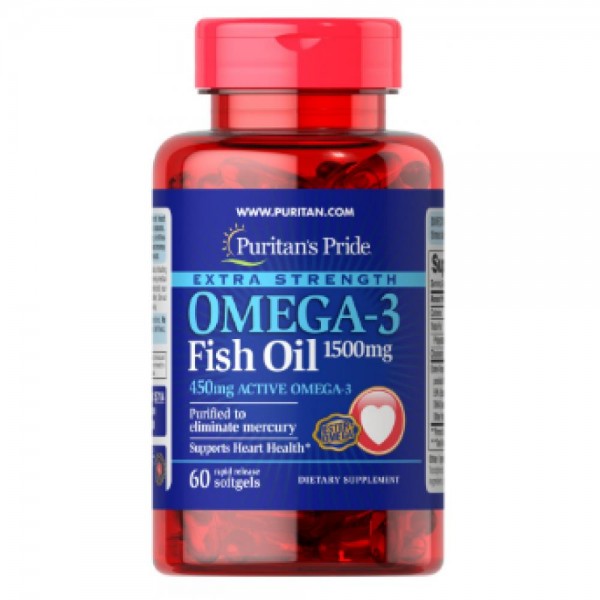 Омега-3, Omega-3 Fish Oil Extra Strength 1500 mg (450 mg Active Omega-3) 60 Softgels Puritans Pride