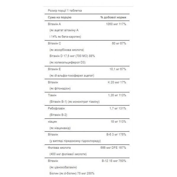 - Комплекс вітамінів та мінералів для щоденного вживання.