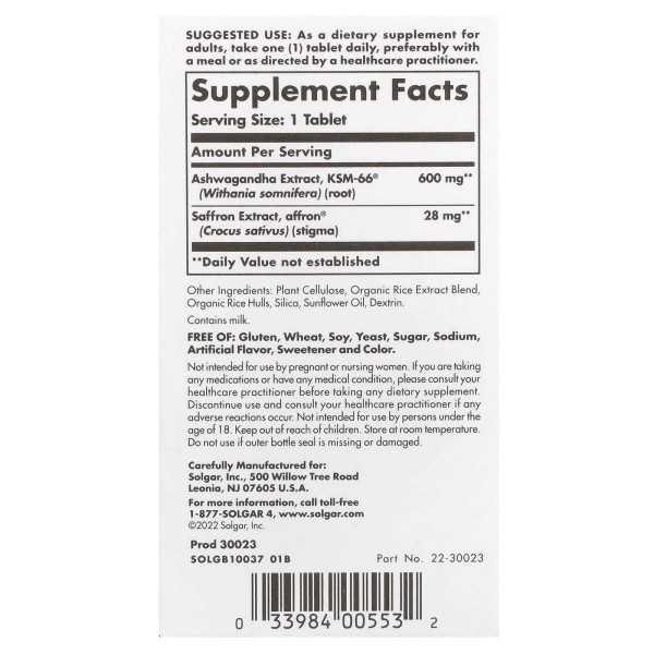 Засіб для зняття стресу й тривоги Solgar® поєднує ефективні клінічно вивчені інгредієнти ашваганда KSM-66® і шафран affron® для зняття стресу на основі традиційної аюрведичної практики.