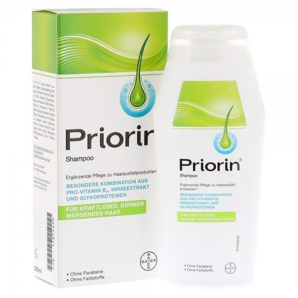 Priorin (Пріорін), виробник Bayer (Німеччина), упаковка 200 мл. Мінерально-вітамінний засіб, проводиться для догляду за ослабленим волоссям: