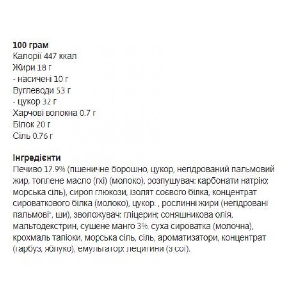 Зверніть увагу, що Protein Crisp Bar - 24x45g Mango не є лікарським засобом. Не замінює повноцінного харчування. Не перевищуйте рекомендовану добову дозу. Використовуйте згідно з інструкцією виробника, яка є на упаковці або всередині неї.