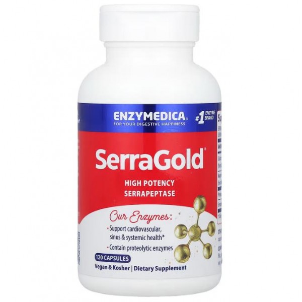Протеолітичні ферменти, SerraGold, Enzymedica, серрапептаза для серця, 120 капсул