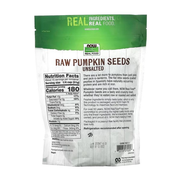Яким би ім’ям ви його не називали, необроблене насіння гарбуза NOW Real Food — це смачні та хрусткі ласощі в будь-якому вигляді — сирому, смаженому або соленому.