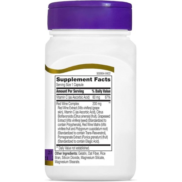 21st Century Resveratrol Red Wine Extract містить деякі живильні антиоксиданти, що містяться у червоному вині. Важливі компоненти, такі як ресвератрол, поліфеноли та еллагова кислота, разом з вітаміном С забезпечують антиоксидантну підтримку.