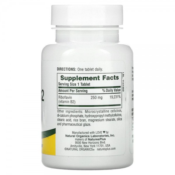 Рибофлавін вітамін B2 Nature's Plus (Riboflavin Vitamin B2) 250 мг 60 таблеток