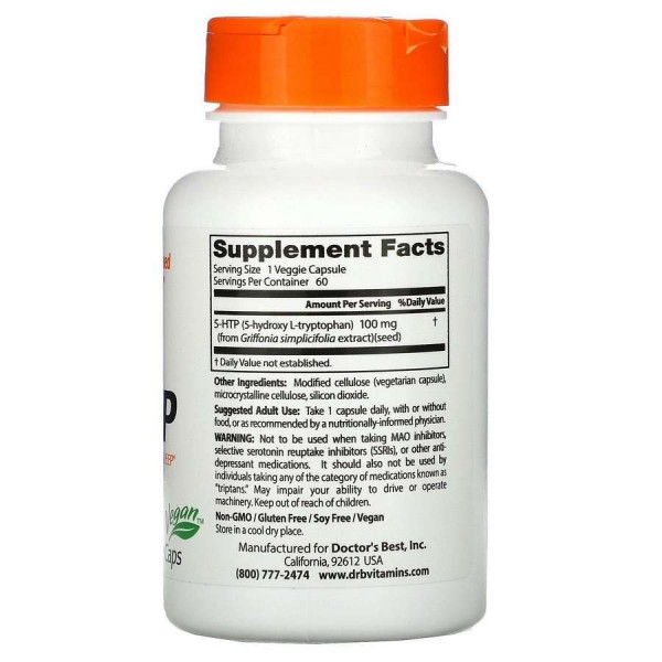 5-гидрокситриптофан, 5-HTP, Doctor's Best, 100 мг, 60 вегетарианских капсул