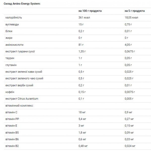Amino Energy System от Power Pro – высококлассная смесь 20 аминокислот, энергетических стимуляторов, витаминов и экстрактов растений. Продукт удлиняет время нагрузок и позволяет усилить их интенсивность, помогает быстрее восстановиться после упражнений. Он ускоряет обмен веществ и наращивание чистой мышечной массы, сжигает жир, проявляет антиоксидантный и анаболический эффекты. Комплекс укрепляет иммунную систему, не вызывает неприятные реакции органов желудочно-кишечного тракта, нормализует работу почек, печени, сердца и помогает регенерации соединительных тканей. Amino Energy System содержит растительные энергетики, благодаря которым увеличивает внимательность, силу, выносливость, точность движений и работоспособность. Они же угнетают аппетит и способствуют уменьшению жировых запасов. Преимущества Power Pro Amino Energy System: придает энергию; восстанавливает мышцы; сжигает жир; угнетает аппетит; защищает от свободных радикалов; укрепляет иммунитет; повышает интенсивность и длительность тренировки; помогает быстрее нарастить мускулы.